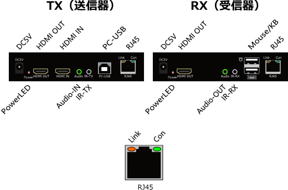 HK202-TRはHDMIモニタ、マウス、キーボードを延長する延長器です。