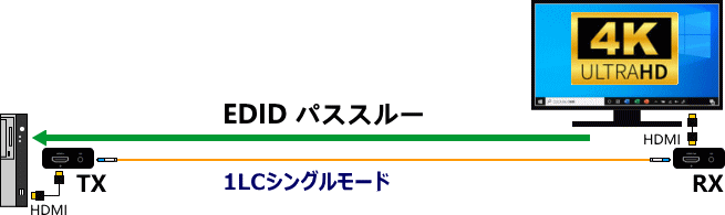 EDID取得方法はパススルー(素通り)で行います。ケーブルを直接接続するイメージです。