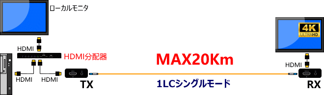 ■HDMIモニタを光ケーブルで最大20Km延長
