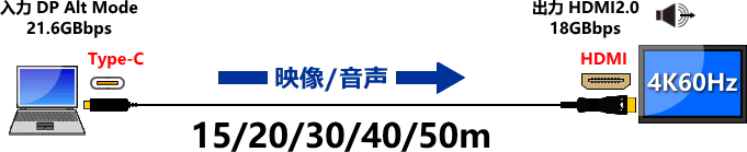 ■DP Alt ModeをHDMIに変換してMAX50m延長